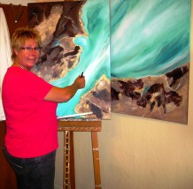 Hier sehen Sie mich an meinem neuesten Werk aus der "Serie Orbit " arbeiten.